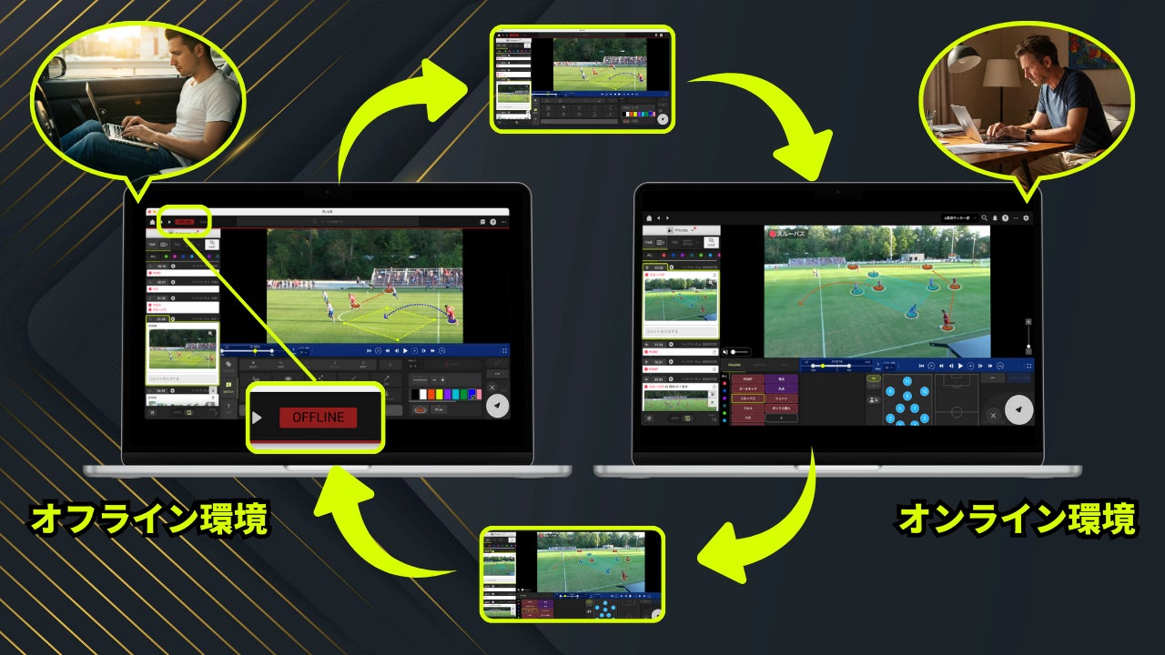 「オフライン環境」で分析した試合を「オンライン環境」にアップロードした後も、継続して試合を分析できます