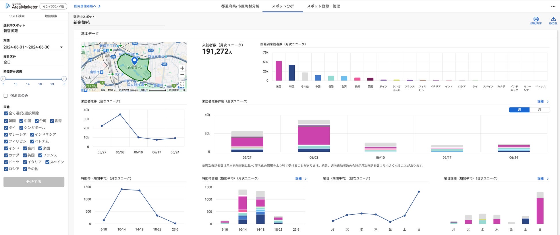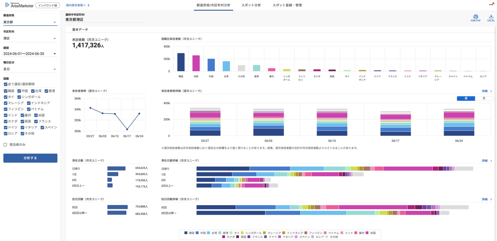 NTTドコモグループの人流分析サービス開発企業 データワイズ 「Datawise Area Marketer」 インバウンド(訪日外国人)版を正式リリース