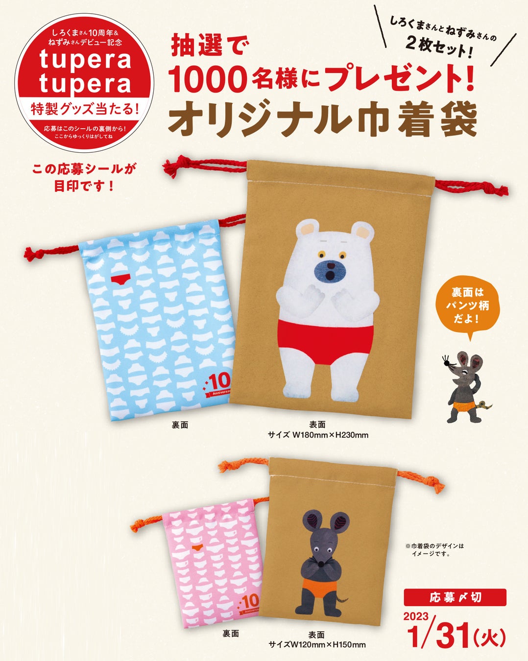 また、tupera tupera オリジナル巾着が抽選で1,000名様に当たる読者プレゼントキャンペーンも開催しています。ぜひご応募ください。