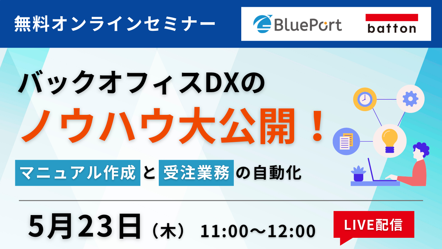 その他にも、2024年5月23日(木)11:00より、株式会社BluePort様との共催ウェビナー「バックオフィスDXのノウハウ大公開!マニュアル作成と受注業務の自動化」を、