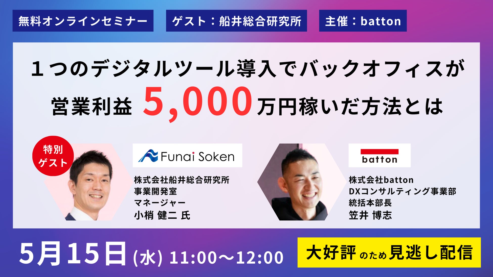 タイトル: 1つのデジタルツール導入でバックオフィスが営業利益5000万円稼いだ方法とは