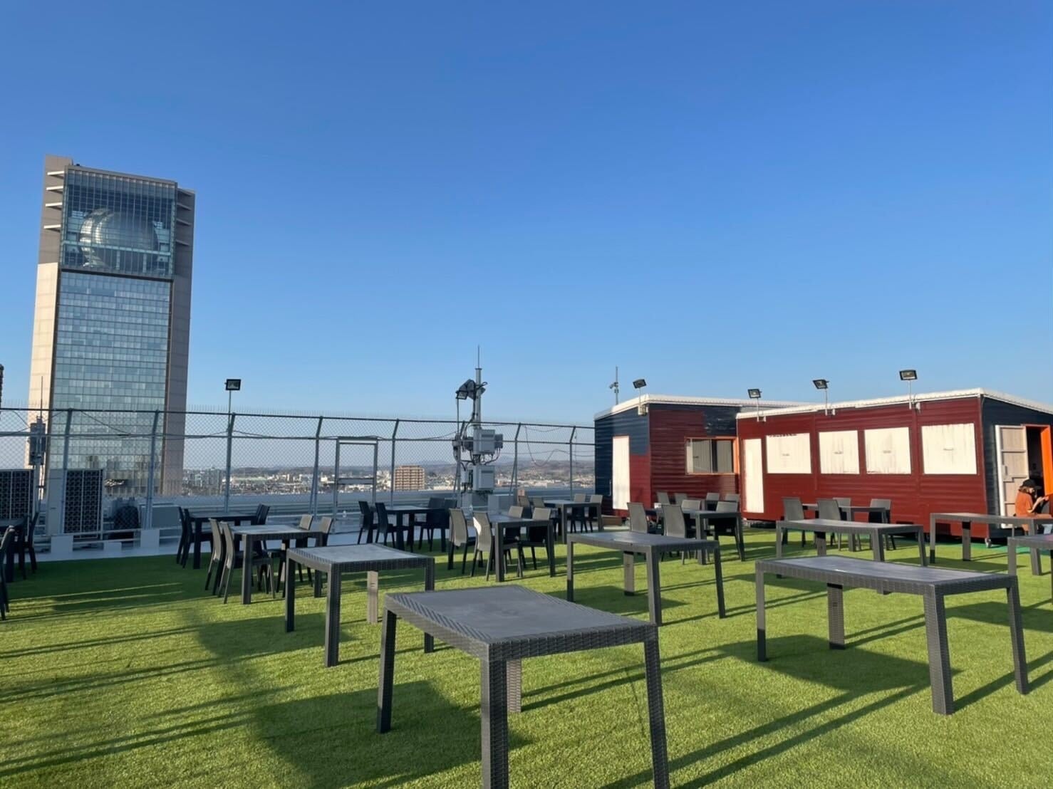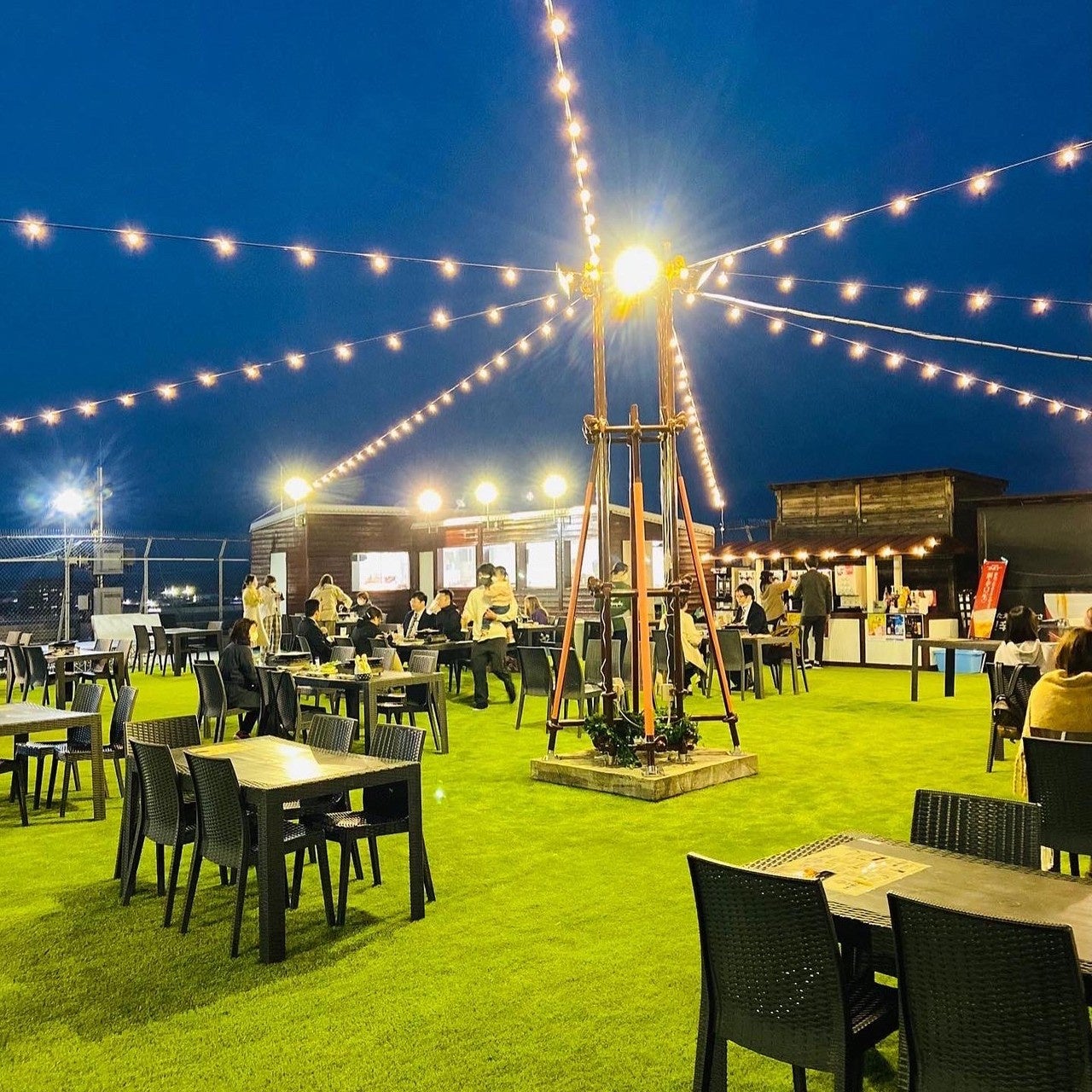 →アティ郡山の屋上ビアガーデンが全面芝生張りのアウトドアBBQ会場として NEWOPEN!全世代の方が楽しめるビアガーデン会場となっております。