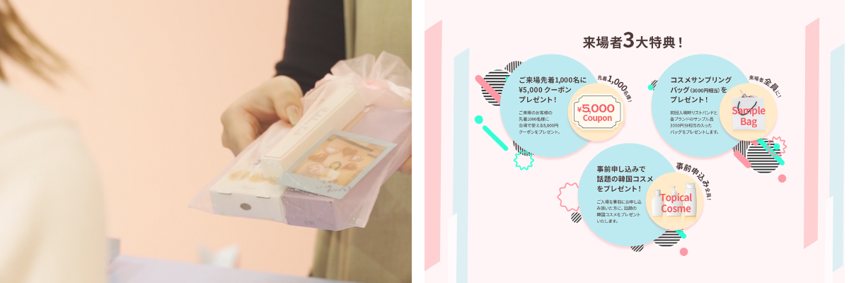 ③来場の事前申込した方限定で、韓国コスメをプレゼント