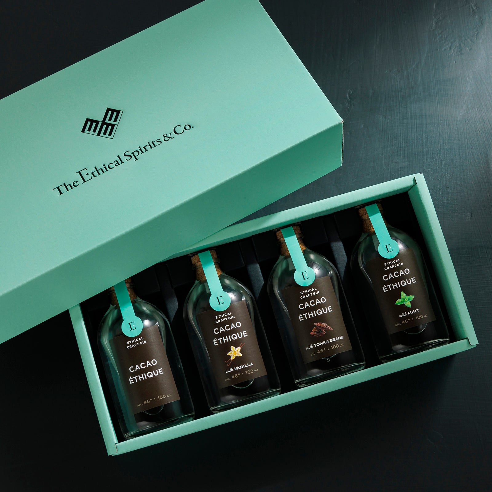 「循環経済を実現する蒸留プラットフォーム」をモットーに、廃棄素材を使用したクラフトジンの生産や、再生型蒸留所を運営する蒸留ベンチャーのエシカル・スピリッツ株式会社(英語表記:The Ethical Spirits & Co / 本社:東京都台東区 / 代表取締役CEO:山本祐也 / 以下 エシカル・スピリッツ)は、2022年のバレンタインコレクションとして人気商品『CACAO ÉTHIQUE(カカオ・エシーク)』より新商品『CACAO ÉTHIQUE with VANILLA』/『CACAO ÉTHIQUE with TONKA BEANS』/『CACAO ÉTHIQUE with MINT』の3種を発表。全4本を同時に楽しめるリッチな数量限定バレンタインセットの予約販売を本日1月24日より開始いたします。