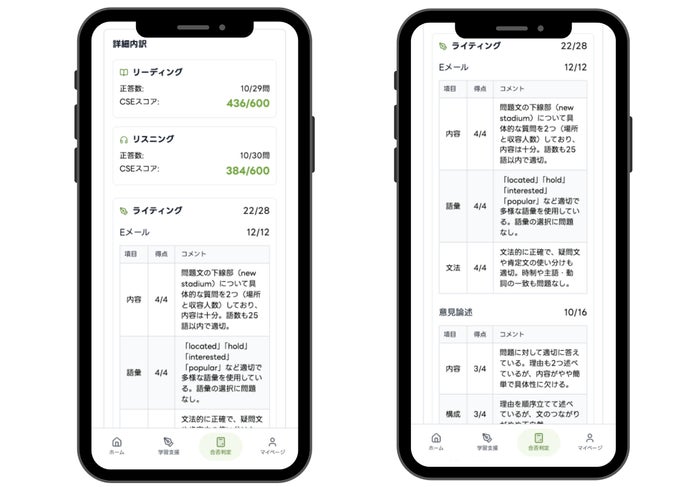 7️⃣ 正答数、ライティング採点の内訳確認