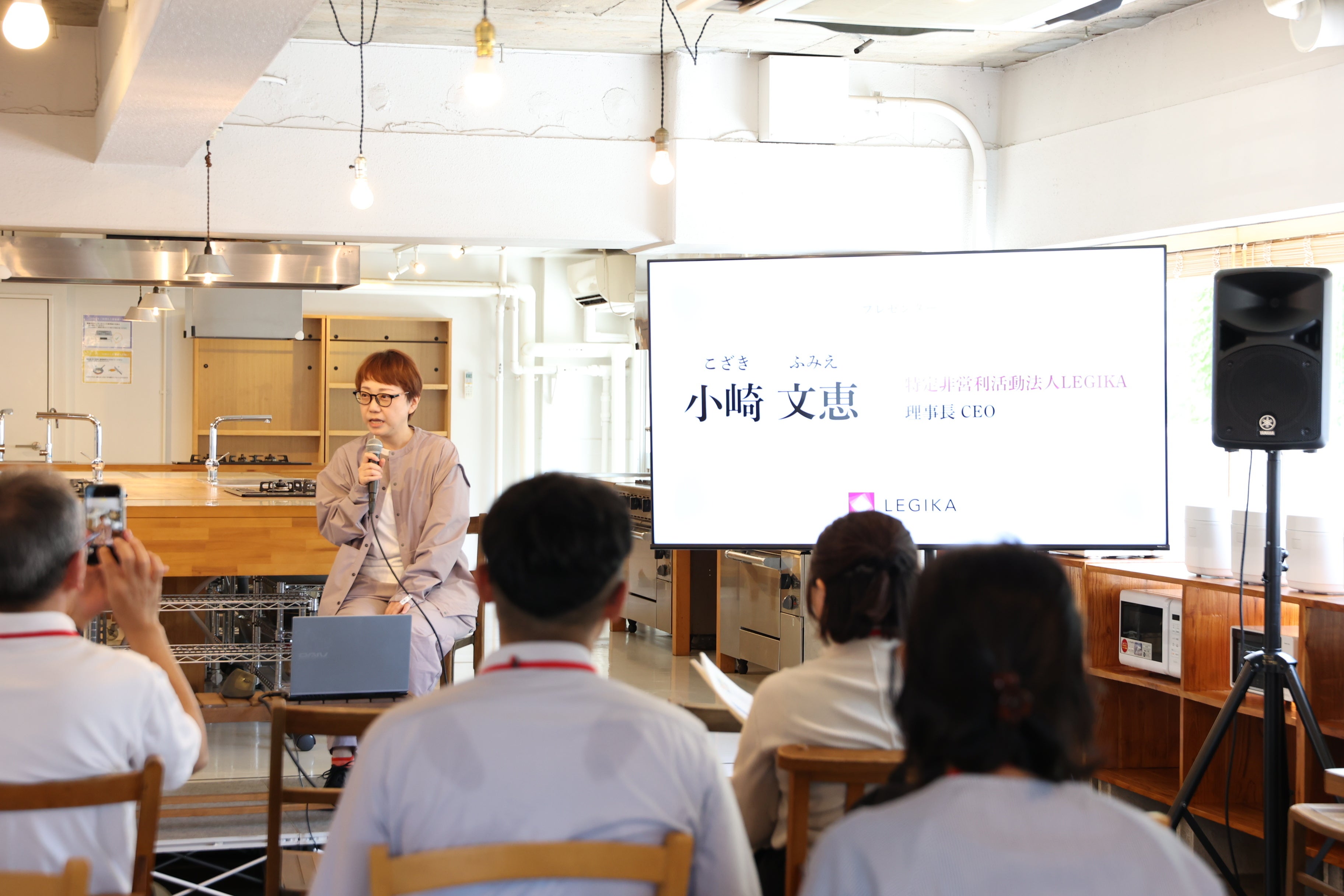 登壇:山本 幸治 氏(株式会社ツインエンジン 代表取締役)、モデレーター:小崎 文恵(LEGIKA理事長)