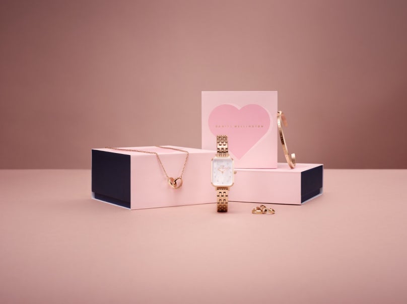 ダニエル・ウェリントンは、バレンタインデーに合わせて、Classic、Petite、Quadroの各コレクションにて新商品を発表します。 ホワイトの⽂字盤、ホワイトとピンクの真珠層でクリスタルをあしらった⽂字盤、ゴールド、ローズゴールド、ツートンカラー のブレスレットの5種類です。Classicブレスレットやクリスタルをあしらったイヤリングと合わせることでルックが完成します。 また、男性へのギフトに最適な40mmサイズのClassicウォッチは、異なるカラーの⽂字盤で、イタリア製本⾰またはメタルメッシュのストラップをご⽤意。 2⽉14⽇までの期間、任意の商品をご購⼊いただいた⽅にはバレンタイン限定のパッケージにてお届けいたします。