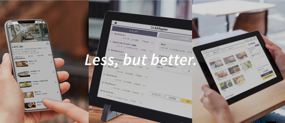 お客さまのスマートフォンを利用し、注文から決済、EC機能まで対応したモバイルオーダーシステムを開発。飲食店をはじめイベントやアパレルなどの小売業態に向け、ローコードでカスタマイズ性の高いサービスを提供しています。“Less, But Better.”(より少なく、しかしより良く)をテーマに新しい消費の創造を目指しています。