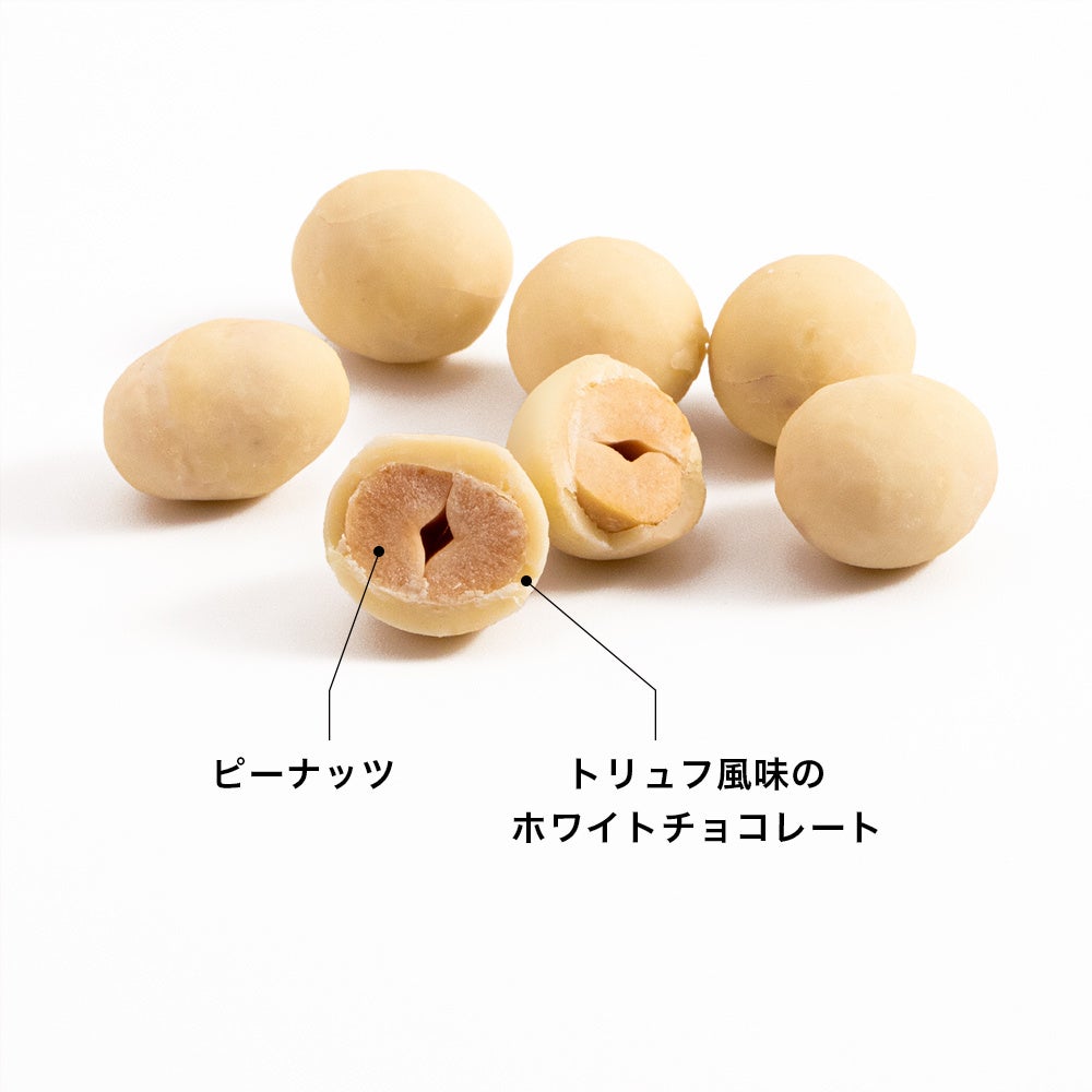 ローストしたカシューナッツを、ヒマワリの種のペーストと海塩を加えたホワイトチョコレートでコーティングし、ココアパウダーで仕上げました。カシューナッツのコクと甘み、ほどける食感をお楽しみいただけます。甘さと塩味が程よいバランスで後を引きます。