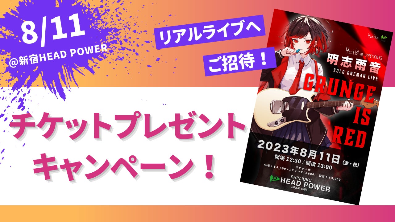 バーチャルワールドと現実世界を行き来するアーティストチーム『Riot Blue』は、リーダー兼プロデューサーでもある『明志雨音』をメインアクトに据え、”リアル”ライブ【GRUNGE IS RED】を開催いたします。