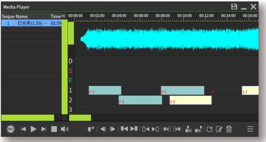 タイムライン機能により、音声データとDMXデータの同期が可能