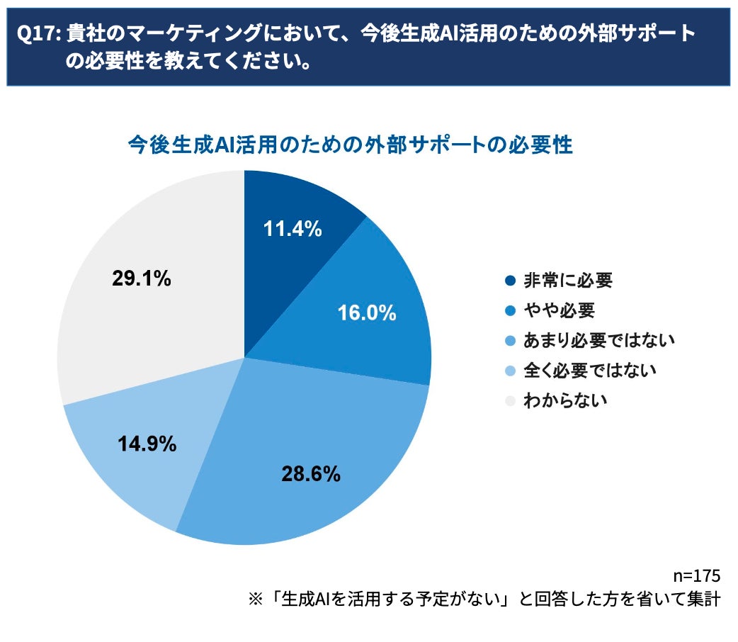 外部サポートの必要性に関して、「必要」(計27.4%)と「不要」(計43.5%) で意見が割れ、さらに約3割が「わからない」と回答する結果となりました。