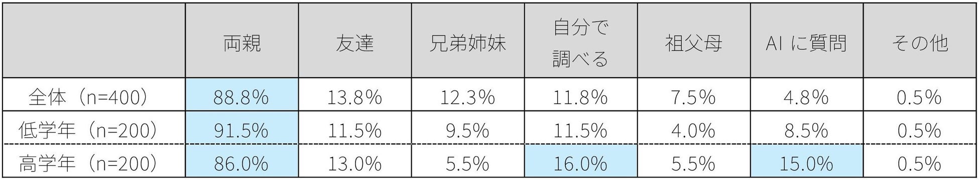 「分からないこと」はまず親に相談、高学年では“AIに質問”(15.0%)の兆しも