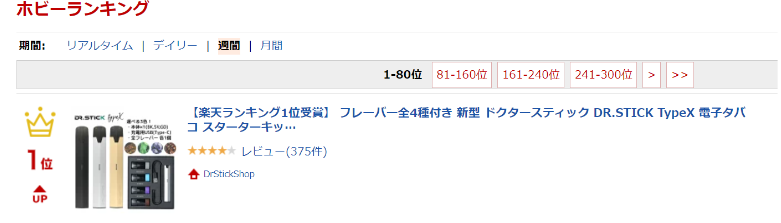 多くの方からご好評いただき、DR.STICK(ドクタースティック)シリーズのスターターキットは楽天週間ランキングでも1位※を獲得しております。