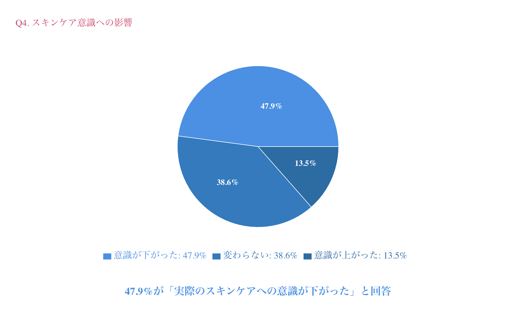 その結果、**47.9%**の方が「写真では肌がキレイに見えるため、実際のスキンケアへの意識が下がった」と回答しました。