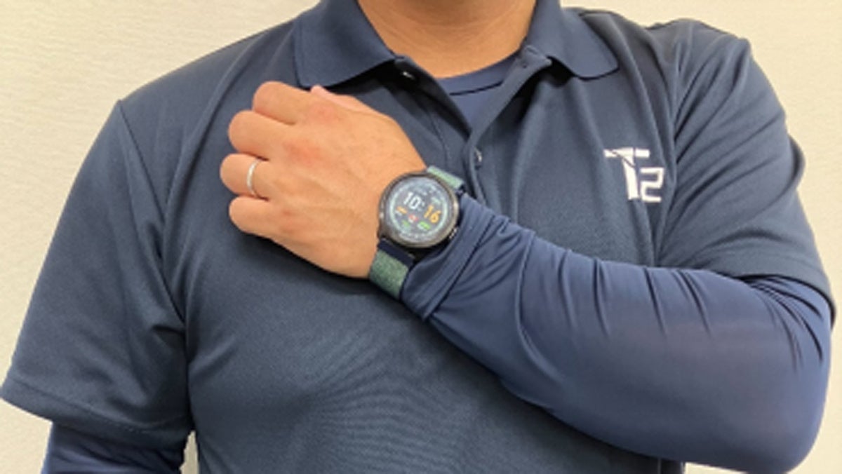 ドライバーが、測定用のスマートウォッチを装着し自動運転トラックで走行