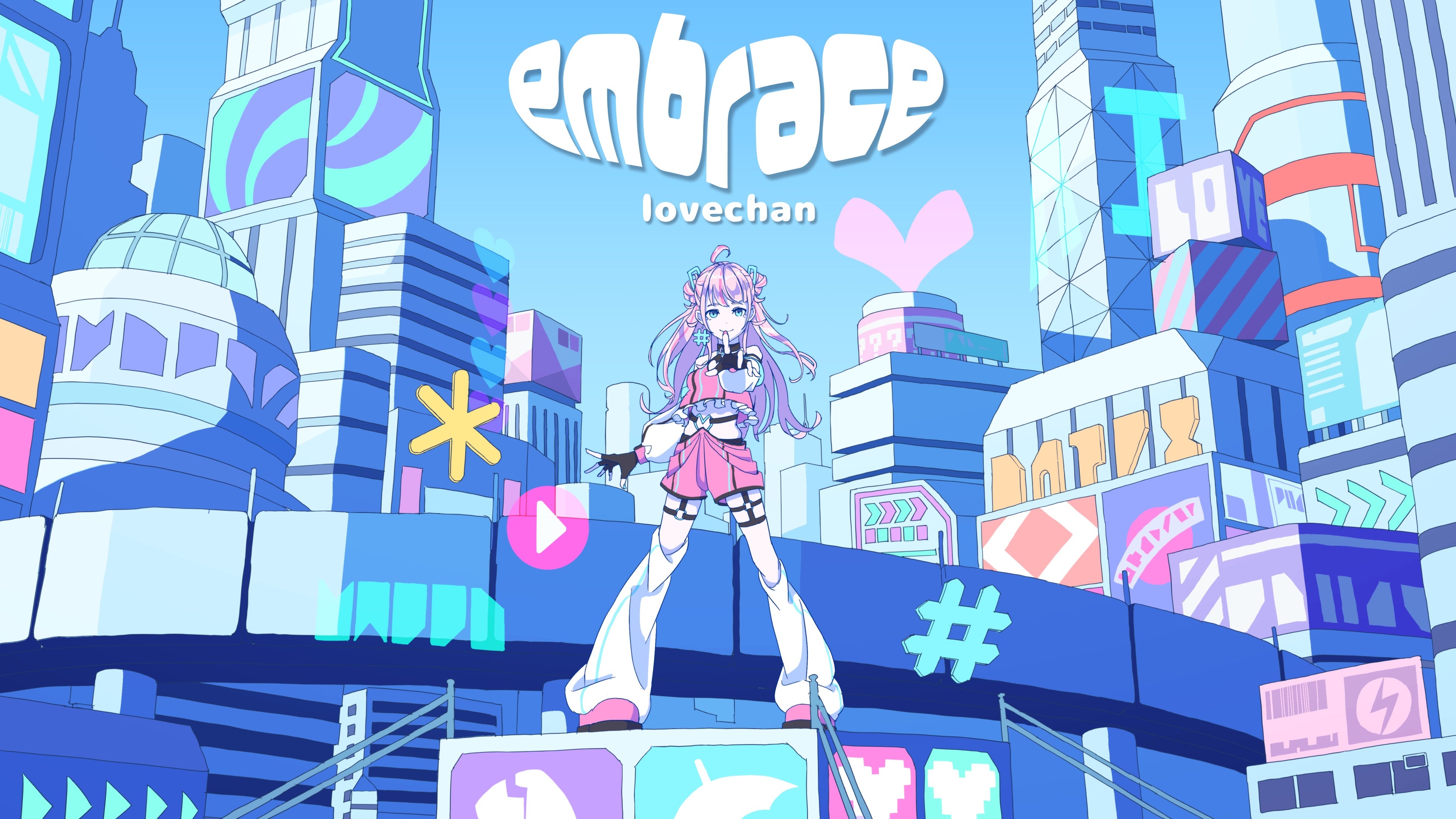 キズナアイとして生まれたのち、loveちゃんとしてチャンネルを分けて活動をし始めながらも、二度の活動休止という過去を経験したからこそ見つけた、「世界中のみんなを、あなたを愛で包み込みたい」という想いをテーマに、温かみのあるアコースティックサウンドと未来を感じるエレクトロニックサウンドが溶け合うトラックに乗せて歌う。自ら歌詞制作に参加したという「embrace」は、”抱きしめる、包み込む”という意味があり、loveちゃんを象徴する楽曲となっている。