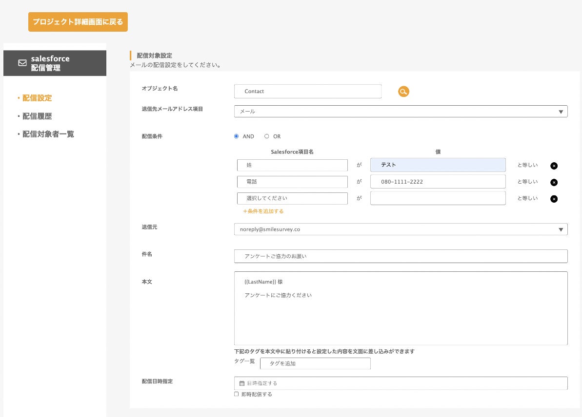 こうした制約を解消するため、smile surveyでは、オブジェクトの種類を問わずメール配信が可能な機能を開発。