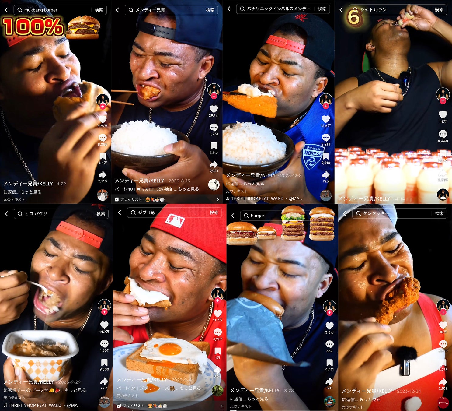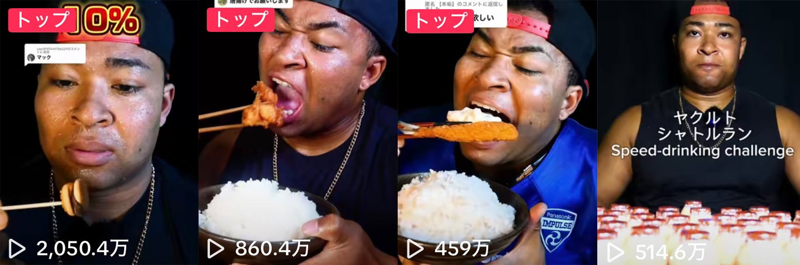 TikTokに投稿されている動画の多数は100万回以上再生され、最も再生された動画は約2050万回再生を越えています。コメント欄では次回の動画で食べて欲しいリクエストが多く寄せられ、豪快な食べっぷりでファンを魅了し続けています。