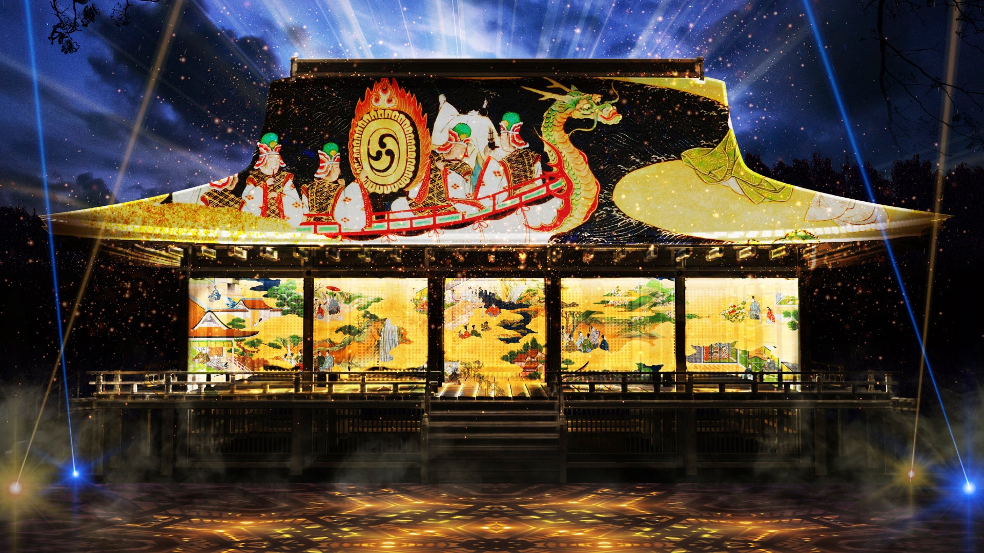 【内容】 かつて斎王が暮らした宮殿の遺跡、国史跡斎宮跡にある「さいくう平安の杜」の正殿・東脇殿・西脇殿に「斎王群行絵巻」「伊勢物語図屏風」「源氏物語絵巻」「十二単」など斎宮ゆかりの文化芸術をモチーフとしたデジタルアニメーションなど荘厳なプロジェクションマッピング映像を投影します。