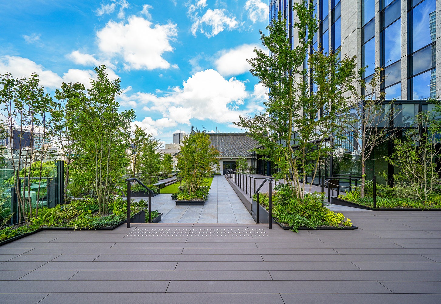 皇居外苑のお堀に隣接する、このレトロモダンなオフィスには、メインアプローチの「九段ひろば」や、屋上ラウンジ / 庭園、専用ラウンジ、貸し会議室など、幅広い共有施設が整備されており、執務エリアに留まらず、職種の異なるメンバー同士が「オープンマインド」に、発想 / 着想 / 想像を展開していくことを期待しています。
