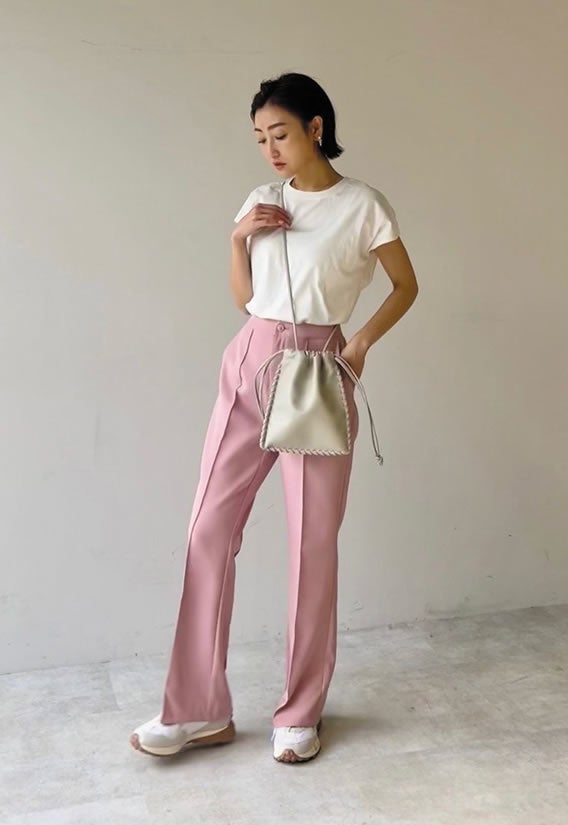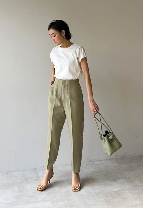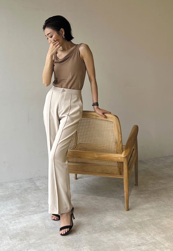 カットツイルセンターピンタックスリムセミフレアパンツ