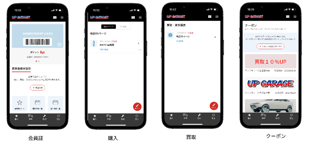 リユースパーツ専門店のアップガレージは、“クルマに愛着をもってカスタムを楽しんでいる方”“リユース品を使用してリーズナブルにクルマを所有したい方”どちらの用途のお客様にもご利用いただいています。当アプリでは、そのどちらのユーザー体験も向上させることができる設計となっており、アプリをご利用いただく全ての方々の生活を豊かにしてまいりたいと考えております。
