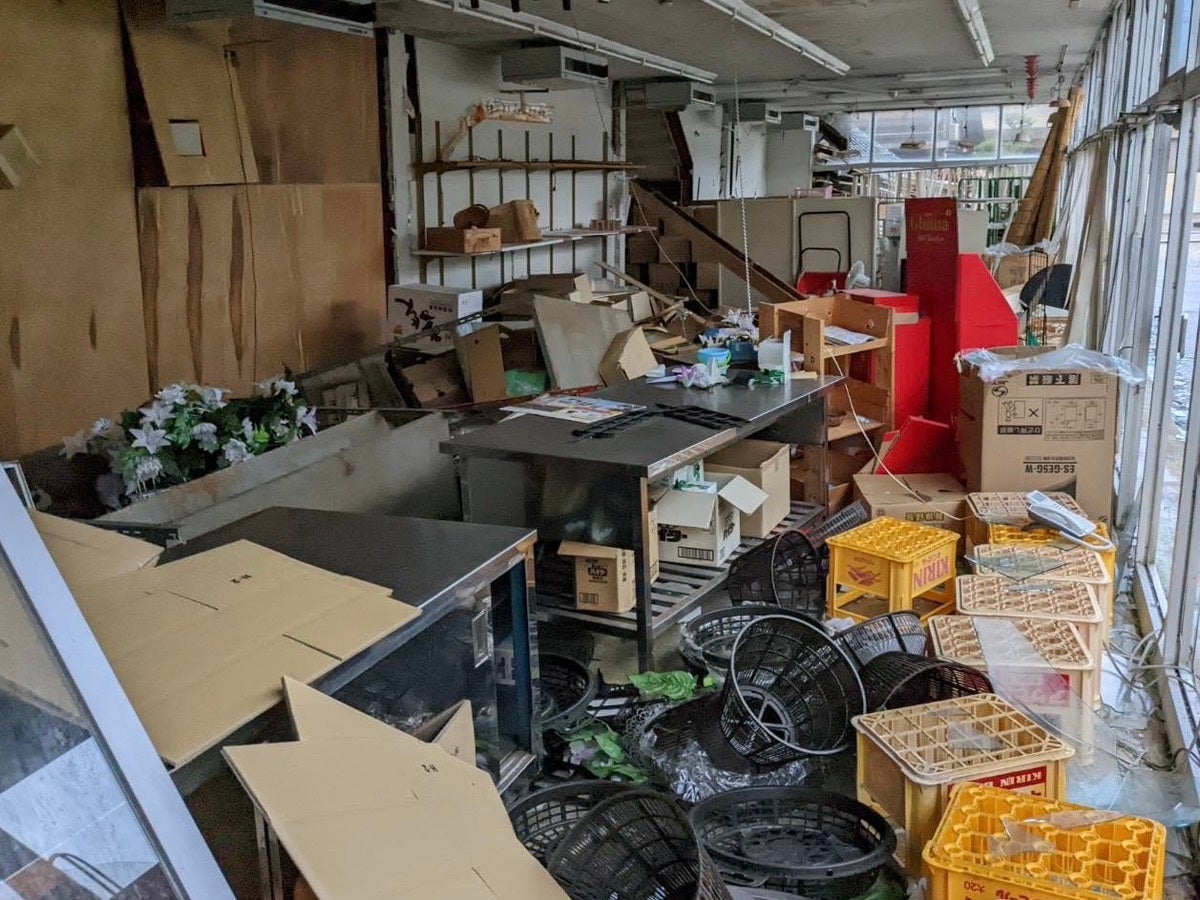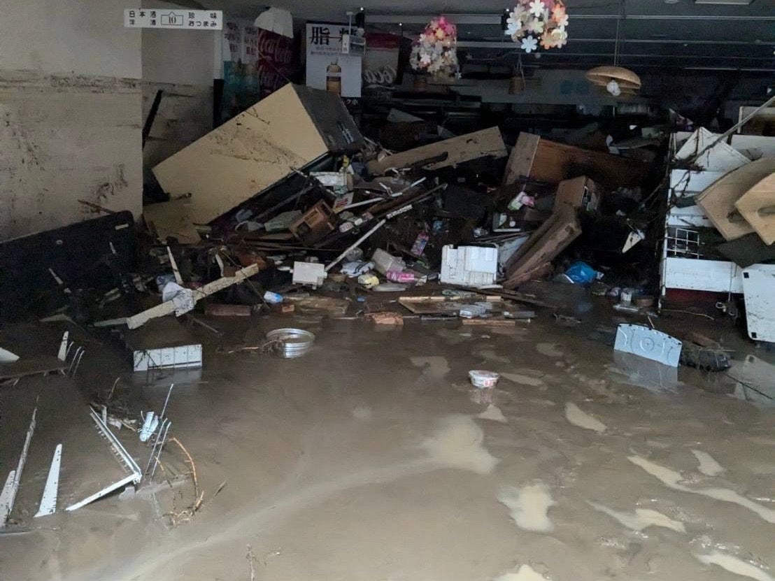 ↑2024年9月21日(土)豪雨直後の「もとやスーパー」店内の様子 2メートルの濁流が流れ込み休業を余儀なくされる