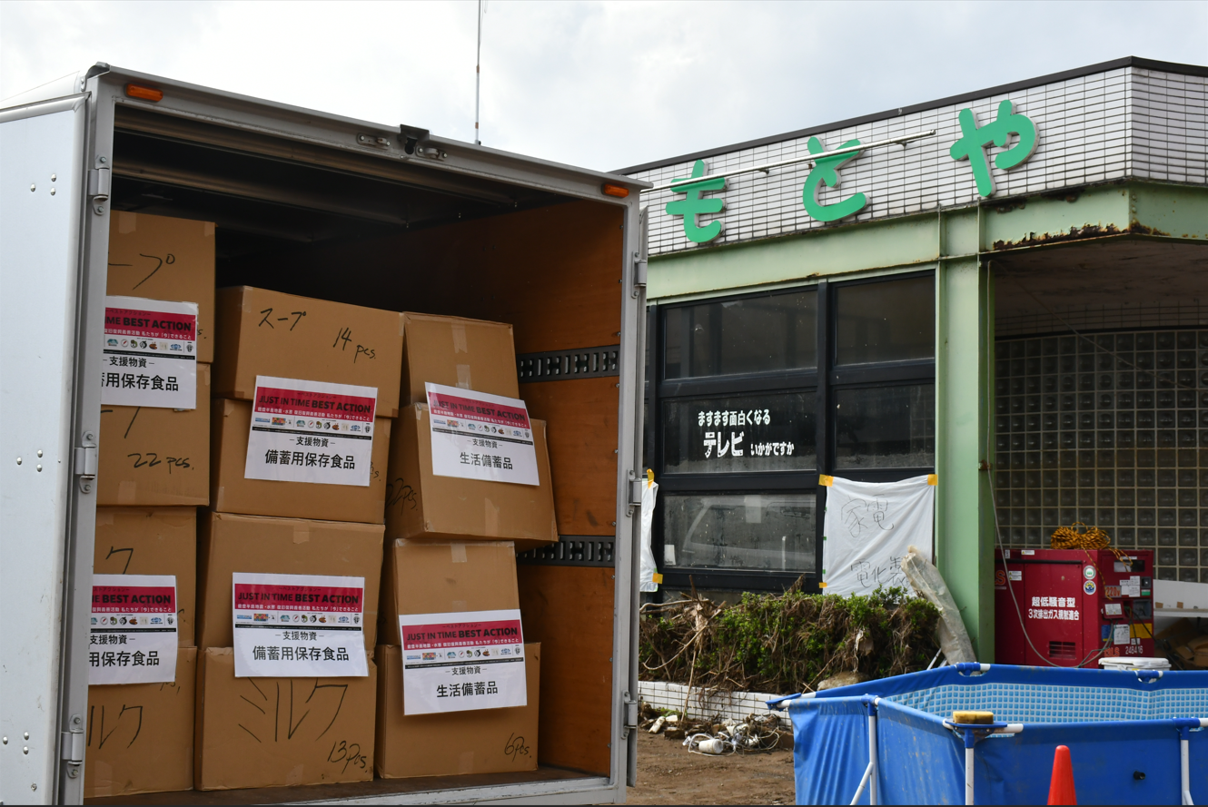 2024年10月30日(水)JUST IN TIME BEST ACTIONチームが石川県輪島市「もとやスーパー」へ支援物資提供を行いました。