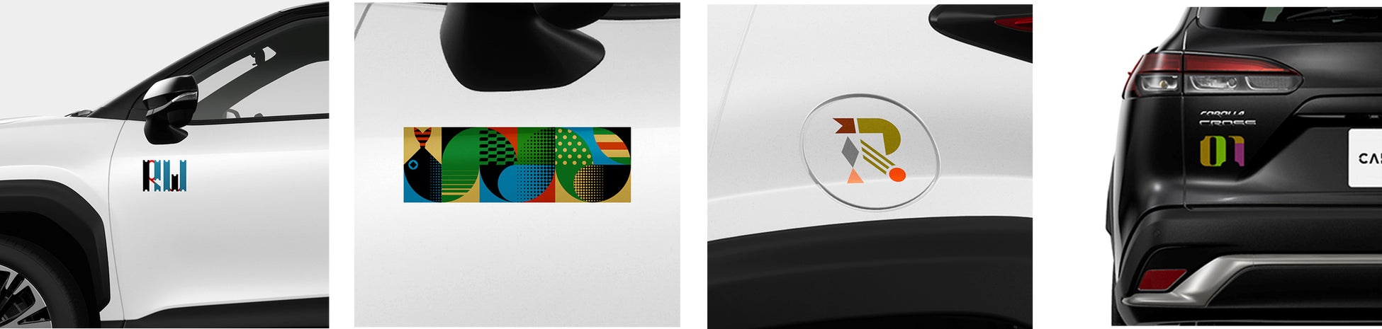 サイドドアやバックドア、ボンネットなど、自分の好きな場所にワンポイントで貼って車の外観アレンジを楽しめるレクタングル型ステッカー(5種)をはじめ、自分の好きな英数字を1~2文字選んで作れるタイポグラフィー型デカール(3種×各5色)がラインアップされます。