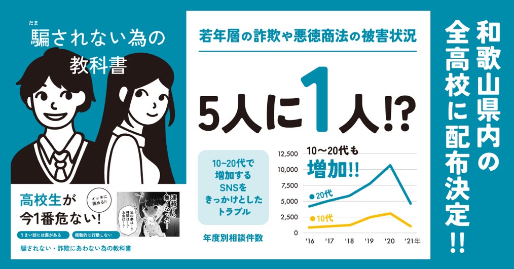 若者を詐欺や悪徳商法の被害から守る『騙されない為の教科書』が和歌山県教育委員会により県内の高校全61校・24,633名へ配布決定!