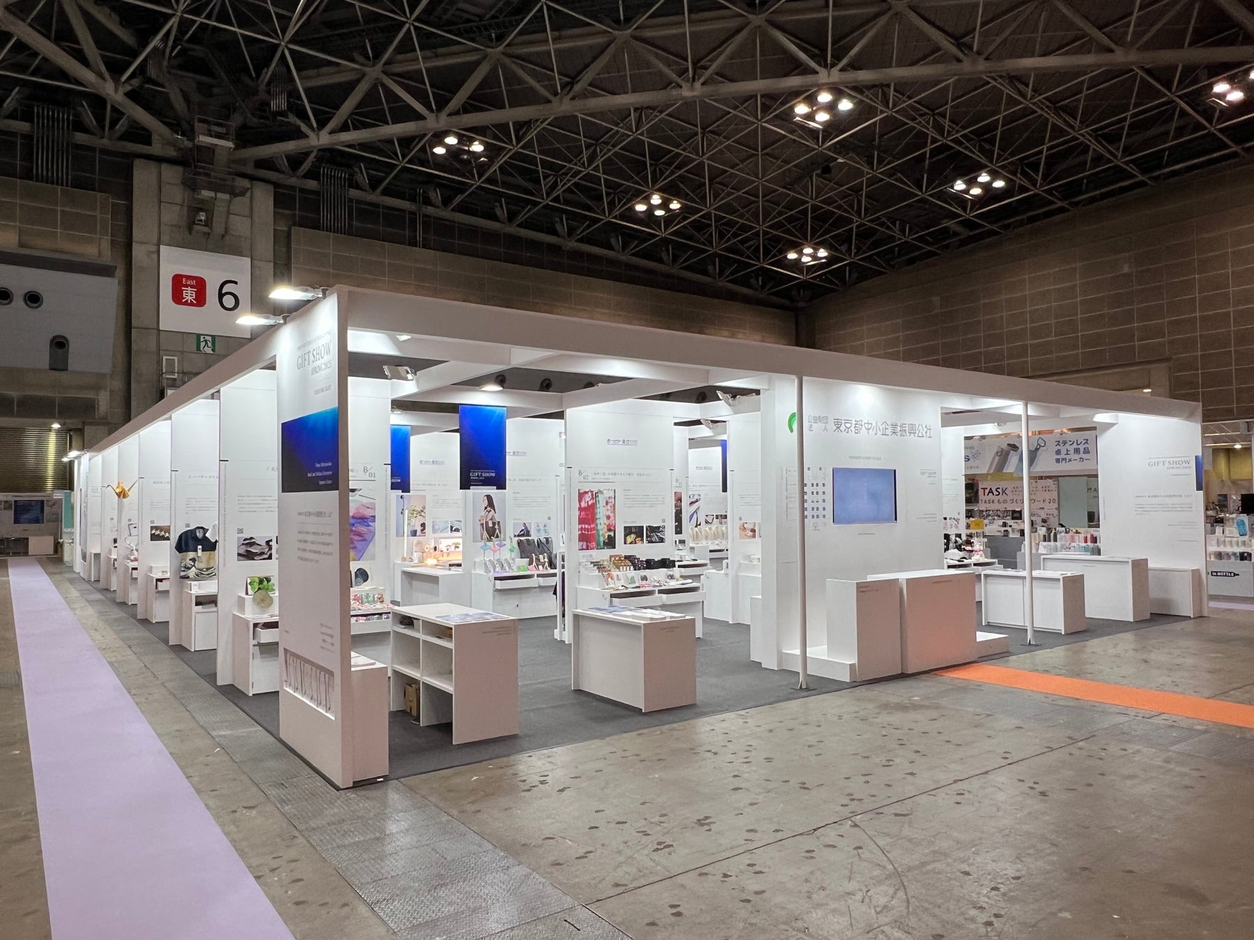 ギフト・ショーにて、コノハト株式会社、株式会社大岸正商店、株式会社 フリーマム(キエルト)、東京都中小企業振興公社(41社)、石川県繊維協会(5社)計54社のプロデュース・ブースデザイン!