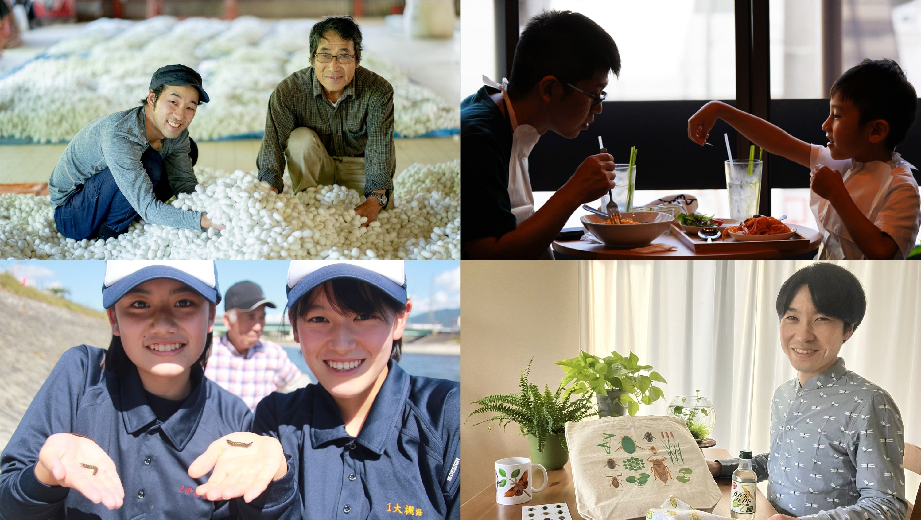 養蚕農家の芦澤洋平さんからは「養蚕業を未来へ紡ぐ」、イラストレーターのトガシユウスケさんからは「多様な生き物と豊かさの本質」というタイトルで物語を紡いでいただきました。