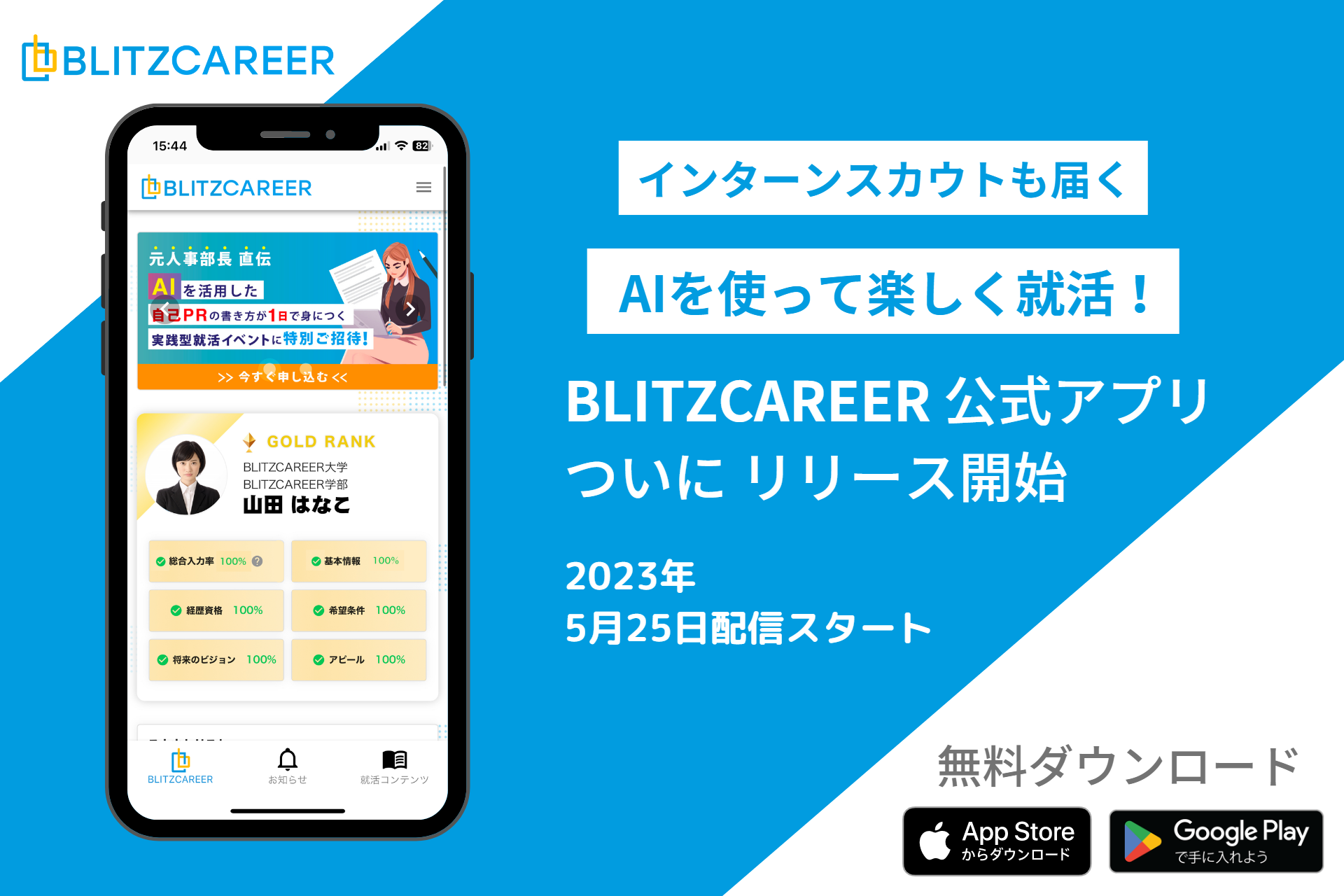 「BLITZCAREER」は企業と学生のミスマッチをなくし、お互いが納得感のあるマッチングを実現したいという想いから生まれました。2023年5月時点でたくさんの学生さんにご登録いただいております。ユーザーフィードバックをもとに、より快適な就活を行っていただくためこのたび公式アプリをリリースいたしました。