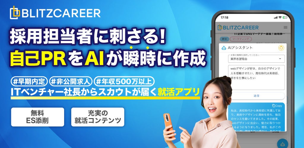 ChatGPT搭載のAI就活サービス「BLITZCAREER」公式アプリリリース!