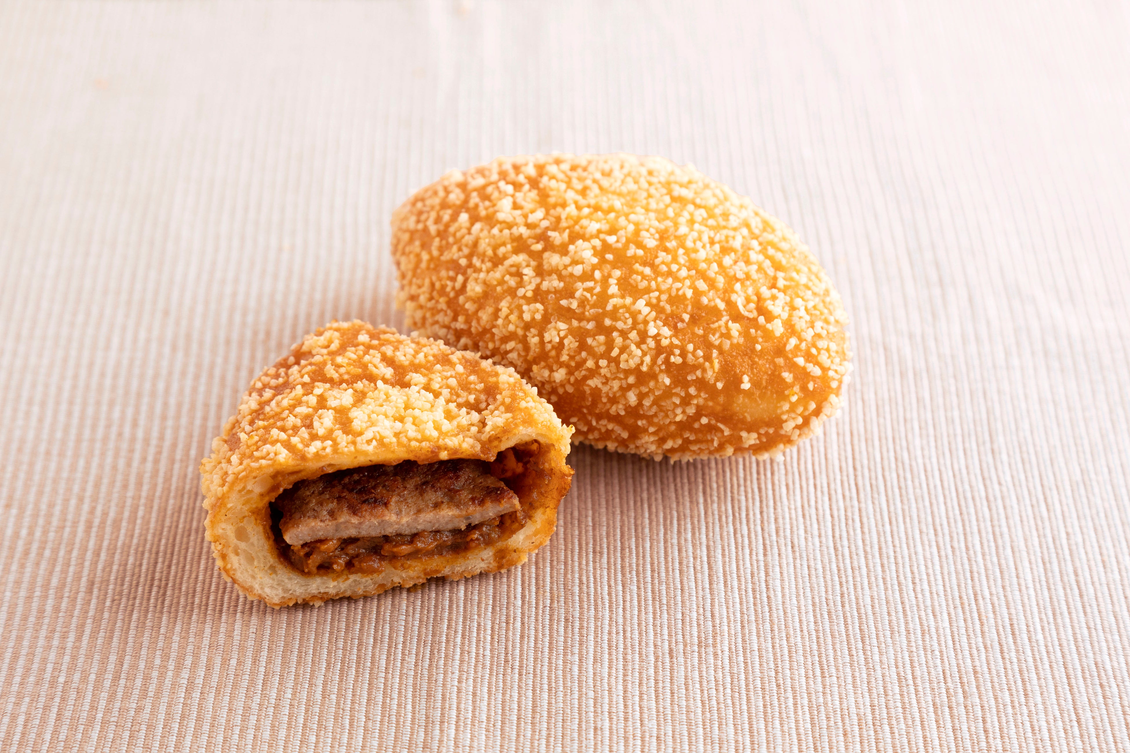辛さ控えめのカレーとジューシーで柔らかいお肉がマッチした贅沢なカレーパン。