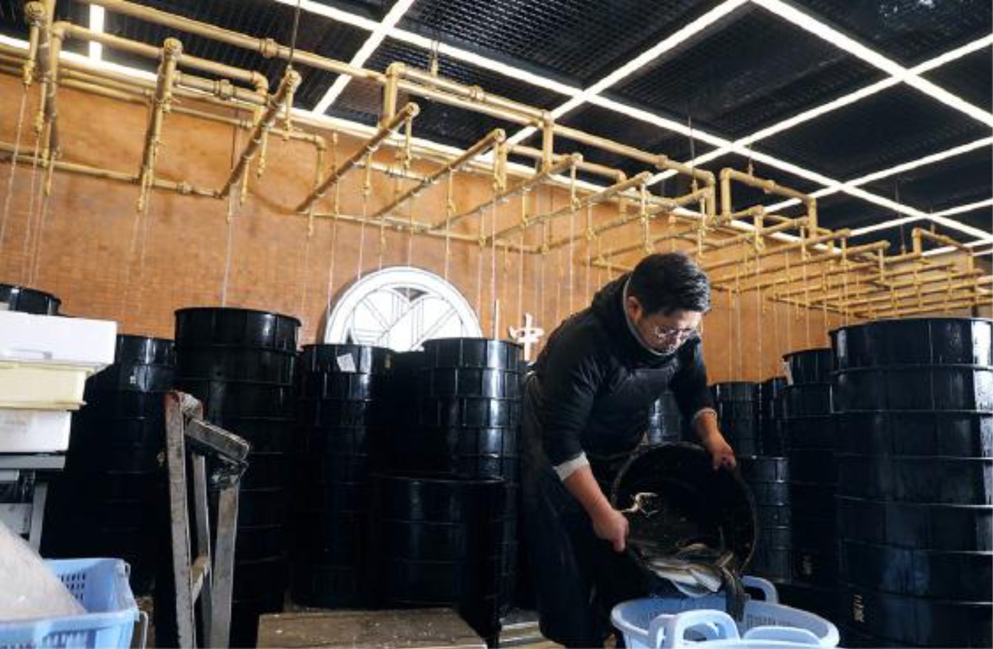 創業から90年以上。老舗の卸問屋としてたくさんのうなぎと向き合う中で、理想とする味わいや食感を逆算し、最高の1匹を選ぶ目を養ってきました。さらに、素材の旨味を最大化させるために、先祖から受け継ぎ守り抜いた、うなぎのための貯蔵施設「立場(たてば)」を利用。地下200メートルの井戸水を汲み上げたその場所で、うなぎをひと休みされることで、井戸水で泥を抜くことで特有の臭みがとれ、素材の質が磨かれます。