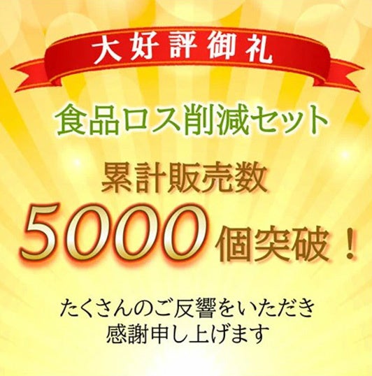 毎回、大変好評いただいており、おかげさまで累計販売個数が5,000個に到達致しました。多くの方に、食品ロス削減への取り組みをご支援いただいておりますこと、感謝申し上げます。そしてまた、ご購入頂きましたお客様には、沢山の高レビューを頂くとともに、高いお客様満足度を頂いておりますこと、重ねて御礼申し上げます。