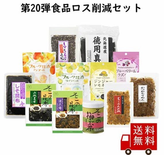 不二食品株式会社(本社:大阪市港区、 代表取締役社長:藤井隆義)は、 『不二食品公式オンラインショップ』『こぶちゃ本舗 楽天市場店』『こぶちゃ本舗 Yahoo!ショッピング店』にて、「食品ロス削減セット」の累計販売個数が5,000個を突破致しました。そして今回、「第20弾 食べて応援♪食品ロス削減セット」をネット通販限定で販売を開始致します。総額6,000円相当の商品が、半額の3,000円!!第20弾も売り切れ必死の為、お早目にお買い求めくださいませ。今年3月に発売50周年を迎えた梅こぶ茶をはじめ、佃煮やフルーツ甘酒、だし昆布などバラエティ豊かな12品詰め合わせです。全国送料無料・数量限定!