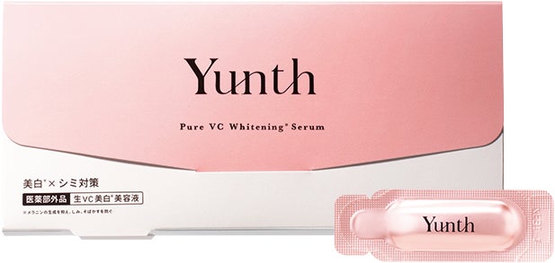 累計450万個以上*1の販売実績を誇るYunthブランドの代表アイテム。生ビタミンC*2を独自処方で閉じ込めた“使用期限30秒*3”の導入美容液です。いつでも新鮮な状態で使える個包装パッケージ、高保湿でありながらもベタつかないトロッとしたテクスチャー、有効成分アスコルビン酸(純粋ビタミンC)がメラニンの生成を抑え、しみ・そばかすを防ぎます。