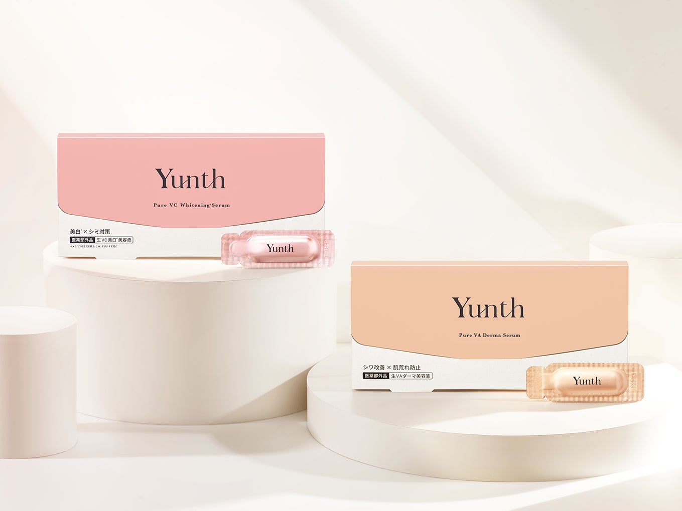 初回は、当社主力のスキンケアブランド「Yunth(ユンス)」の「生VC美白美容液」と「生VAダーマ美容液」の2商品をお届け予定です。