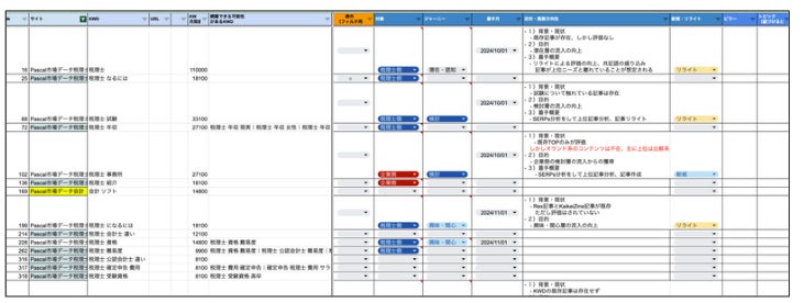 ・2:KWDリサーチから構成案を定め、施策を実施する為の管理表