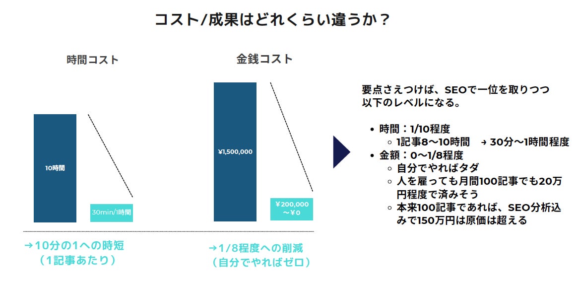 オーガニックコンテンツの特性理解・個人的結論(時間と人的コストは1/10〜1/8程度)