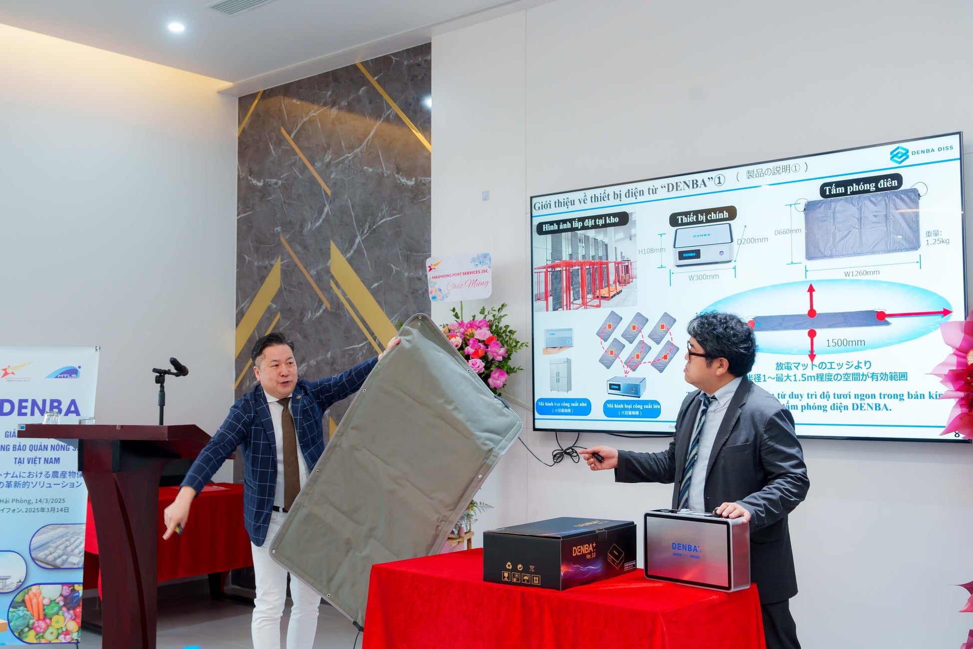 契約締結式典においてはHPS社の豊富な冷凍冷蔵輸送・保管のノウハウや、DENBA DISSの鮮度保持技術について来場された大学関係者、生産者、行政、マスコミなどに説明、ベトナム国内における次世代コールドチェーンの構築に大きな期待が寄せられました。
