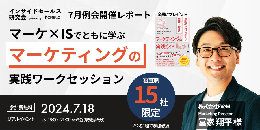 株式会社OPTEMO(本社:東京都千代田区、代表取締役:小池桃太郎、以下OPTEMO)は、2024年7月18日に「マーケ×ISでともに学ぶマーケティングの実践ワークセッション」と題してインサイドセールス研究会7月例会を開催いたしました。