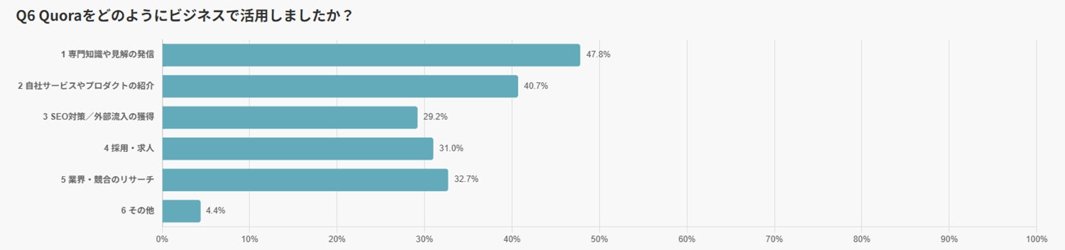 この結果から、日本国内でもQuoraが単なる知識共有の場にとどまらず、実務的な目的で積極的に利用されていることがわかります。