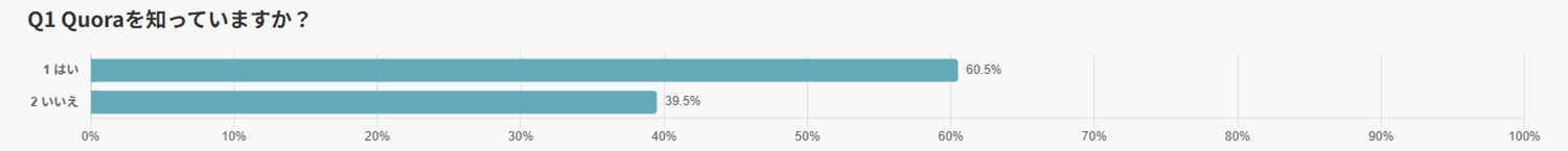 今回の調査では、日本国内におけるQuoraの認知率は60.5%となりました。
