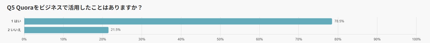 今回の調査では、Quoraをビジネスの場面で活用したことがあると回答した日本人ユーザーは78.5%に上りました。
