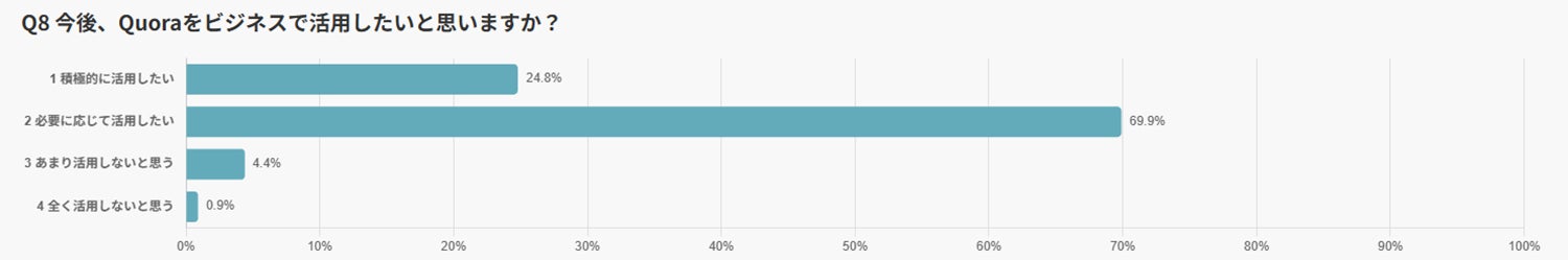 この結果は、Quoraが単なる情報共有のツールではなく、信頼を積み重ねることで中長期的に効果を発揮するビジネス基盤として認識されていることを示しています。