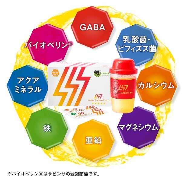 GABAや乳酸菌・ビフィズス菌に加え、生体内で必要とされるカルシウムやマグネシウム、亜鉛、鉄、約70種類のミネラルを含有する「アクアミネラル」を配合。さらに、特許取得の「バイオぺリン®」が、食事や「DR.SENOBIRU」などのサプリメントから摂取した栄養成分の吸収や生体内利用効率を高めます。